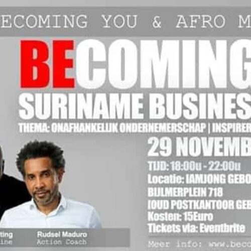 BECOMING YOU en AFRO Magazine organiseren i.v.m. onafhankelijkheidsdag van Suriname de Suriname Businnes Meeting, een event waarbij succesvolle ondernemers en ervaren professionals uit de Surinaamse, Caribische en Afrikaanse diaspora hun kennis en ervaring zullen delen.