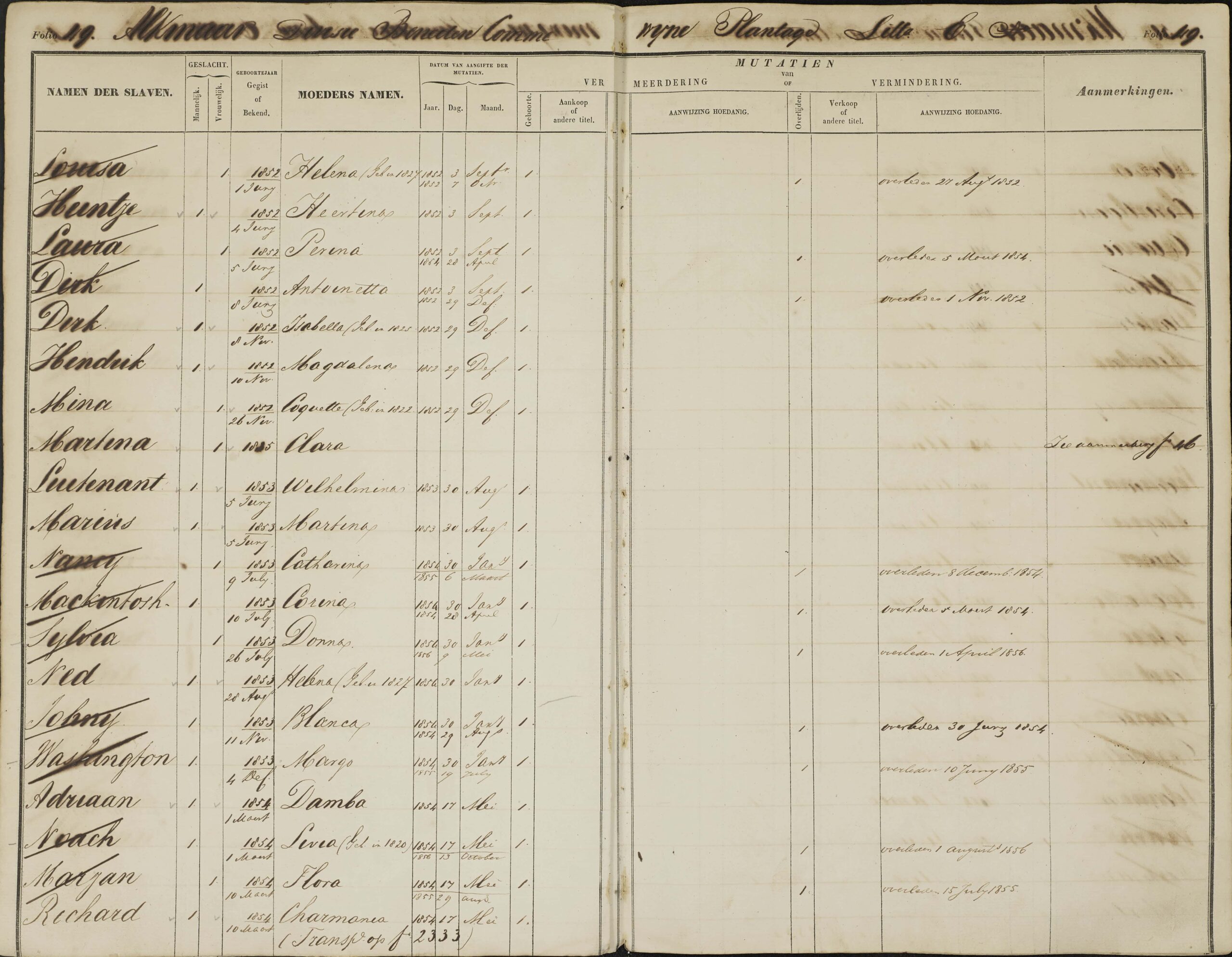 In de Surinaamse slavenregisters staan naar schatting tachtigduizend mensen geregistreerd die tussen 1830 en de afschaffing van de slavernij in 1863, in Suriname in slavernij leefden. Slaveneigenaren moesten de mensen die in hun bezit waren laten registreren, met vermelding van naam, geboortedatum en de naam van de moeder en informatie over geboorte, overlijden, vrijlating, verkoop en andere informatie die belangrijk was voor de status en waarde van mensen in slavernij.