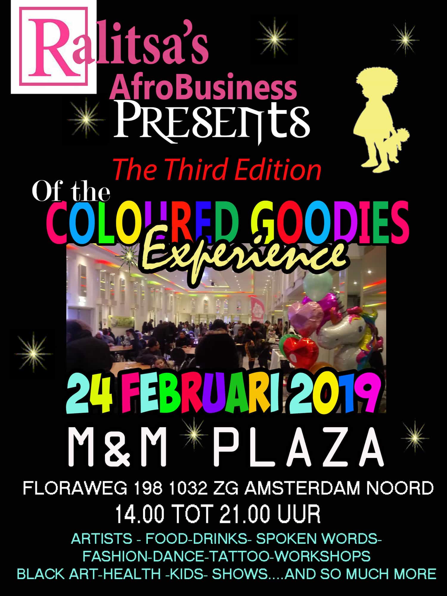 Afgelopen jaar hebben tante Ellen Brudet (Coloured Goodies) en ik het al geflikt. The Coloured Goodies Experience met 52 black owned businesses en 750 (!) bezoekers. In 2019 moet alles groter: The Bigger The Better! Op zondag 24 februari is The Experience er weer met 75 black owned businesses en de verwachting is dat het NOG drukker wordt dan de vorige editie! De kaartjes worden al als kerstkado gekocht en zo heb je natuurlijk ook geen POSTNL-stress (hint.. hint..). De kaartjes kosten 5 euro voor volwassenen en 3,50 euro voor kids en zijn te verkrijgen via black owned ticketshop YourTickets: