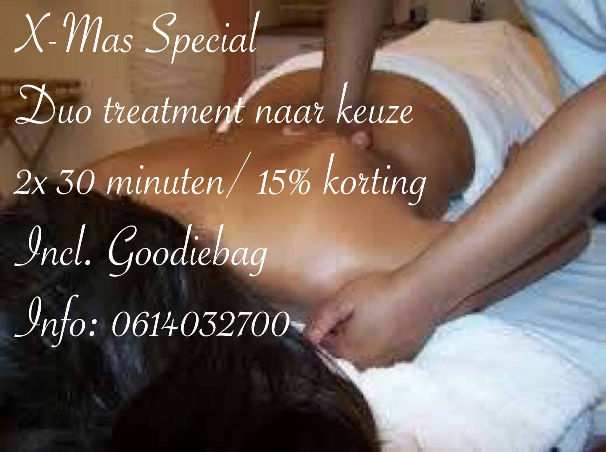 Keuze uit: massage rug/nek/schouders, voetreflexologie, Gezichtsreflexologie, basis facial of pedicure. Jullie worden na de behandeling verwend met een fruit hapje en een goodiebag.  Boeken voor 23, 24 en beide kerstdagen op uiterlijk vrijdag 21 december